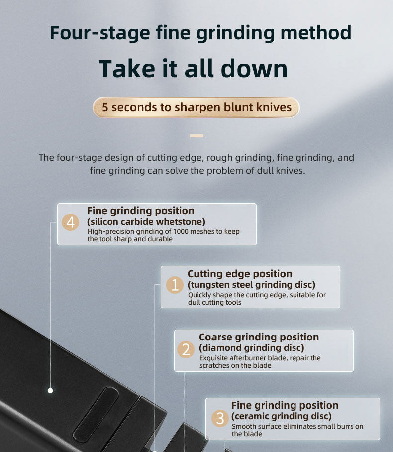 - Four-stage fine grinding | 5 seconds speed grinding I fast and sharp: