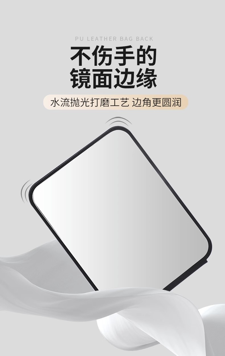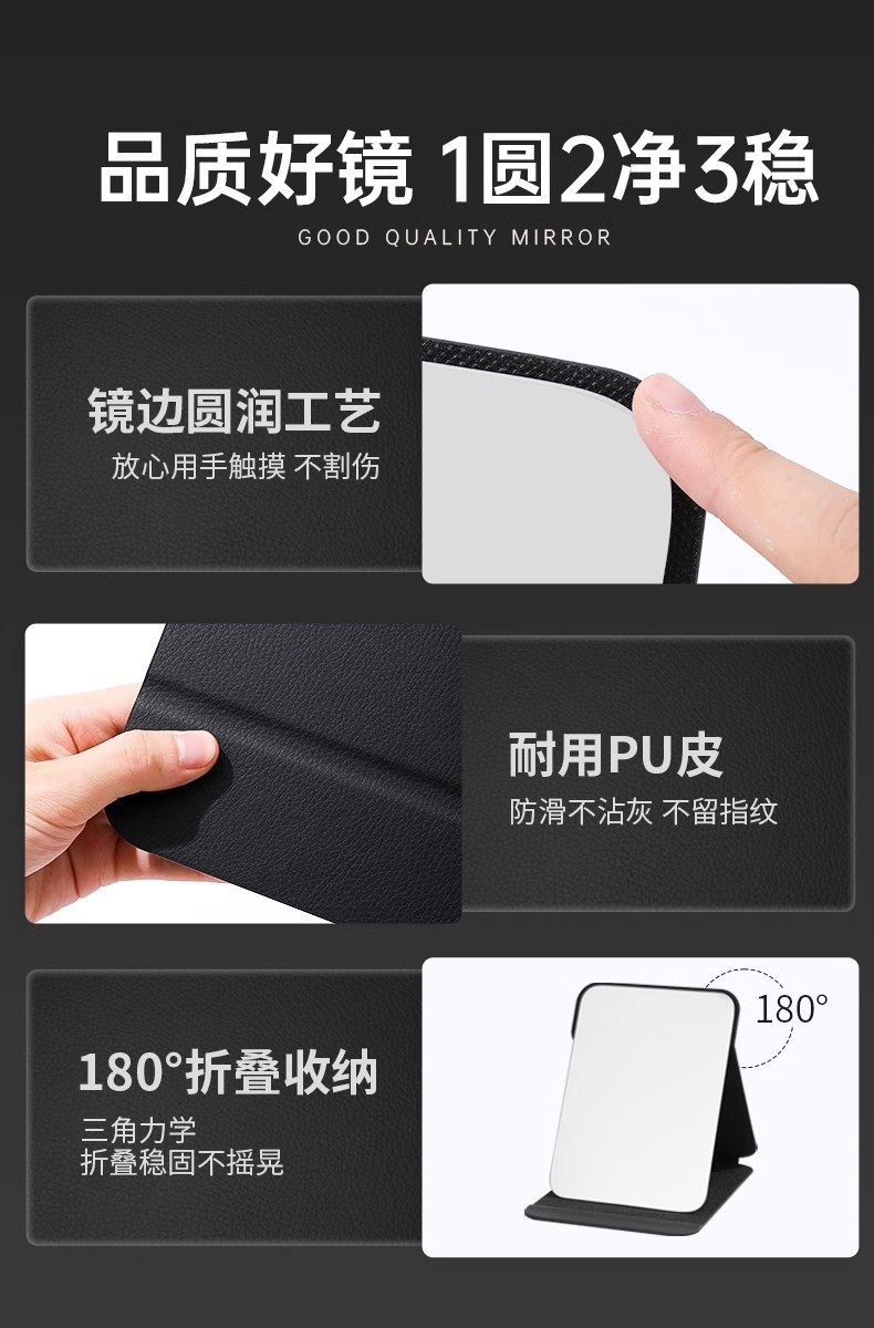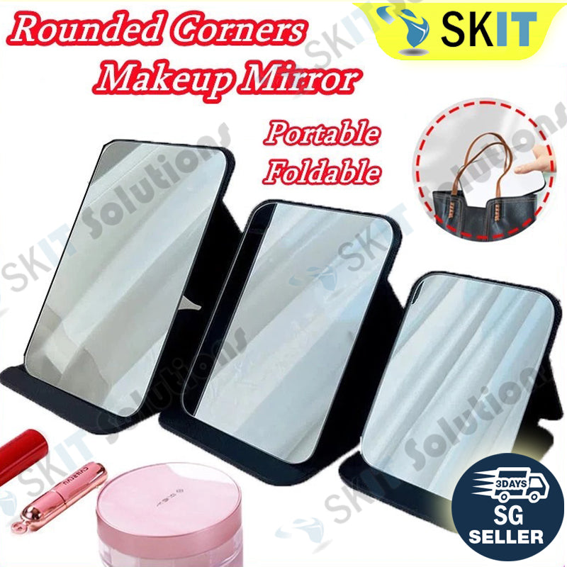 Foldable PU Leather Makeup Mirror Desktop Portable Pocket Cosmetic Travel Vanity Rounded Corner