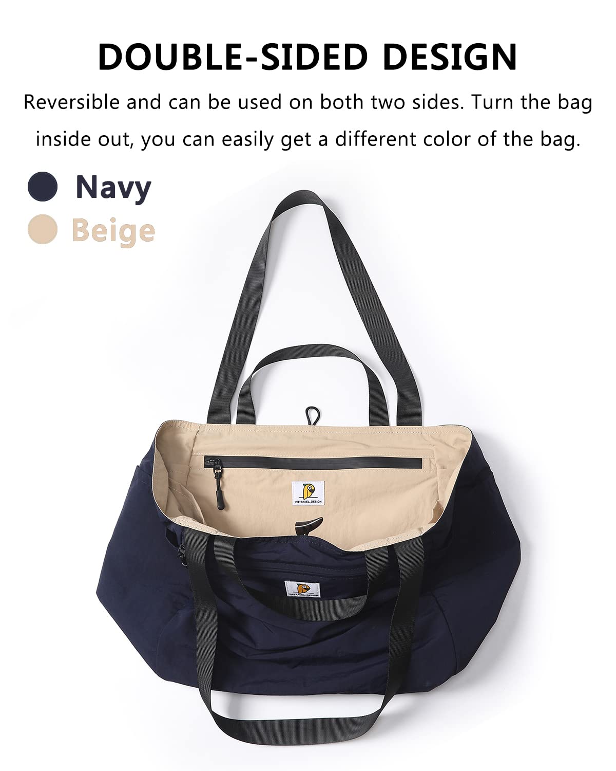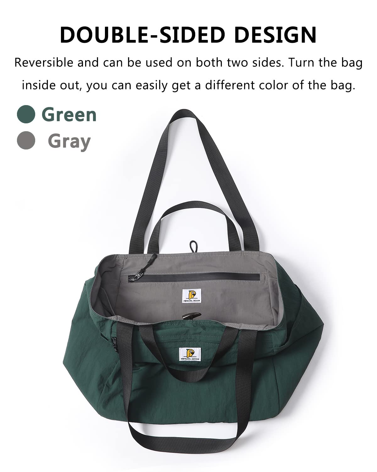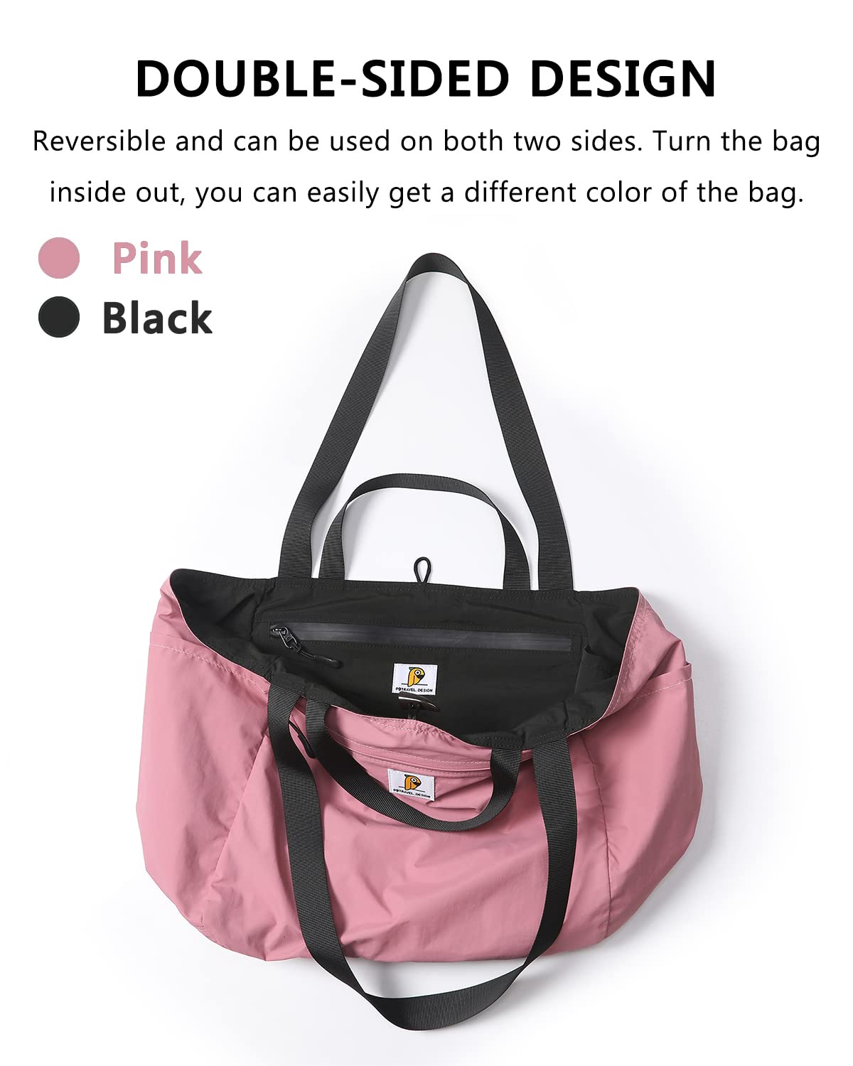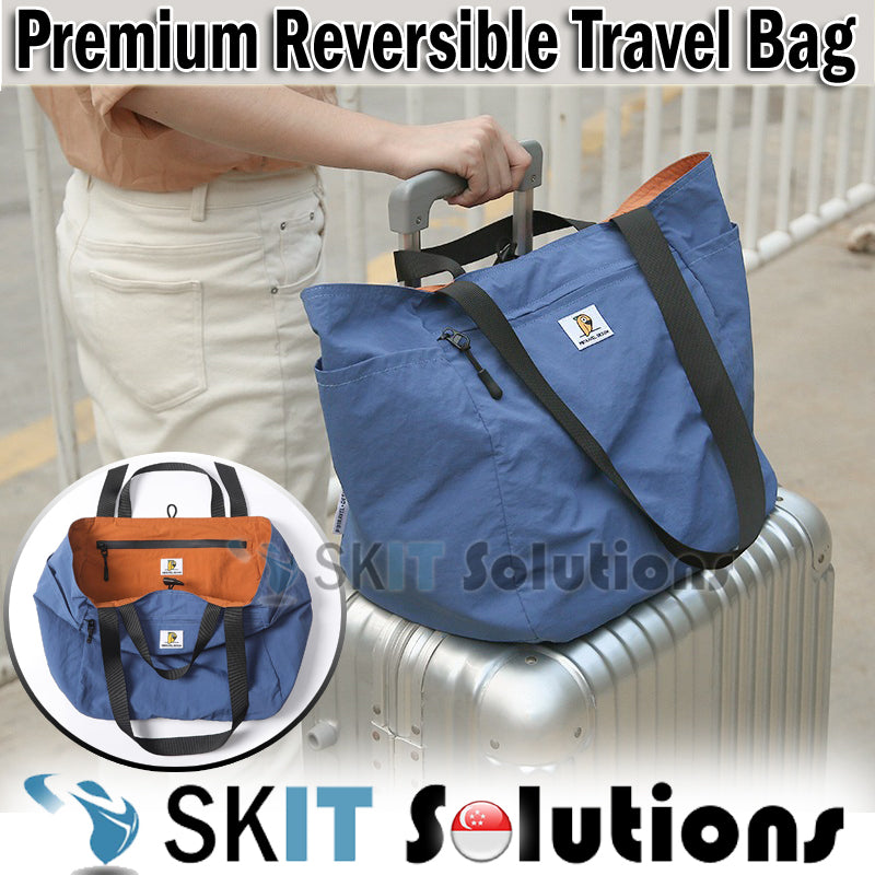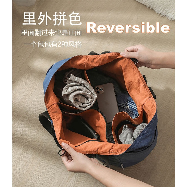 UNIQUE DOUBLE-SIDED DESIGN: This unisex classic travel duffels has a funny design, it is reversible and can be used on both two sides. Turn the bag inside out, you can easily get a different color of the bag, and the function and the size of the duffel bag will be intact at the same time.