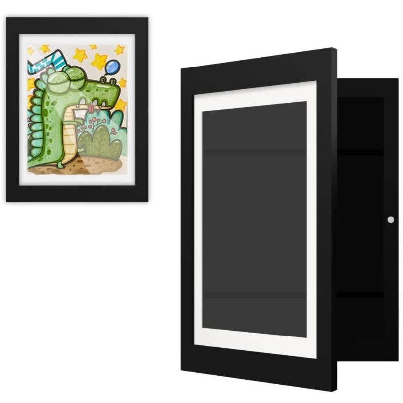 🖼【Kids Art Frame Design】Our changeable kids art frame is perfect for displaying your kid's precious artwork in the most elegant way, you can open and close it like a book. There are 2 flexible swivel tabs on the back so you can mount your artwork very quickly and easily. It has elastic inside so you can display art without it, or use it to store old art.