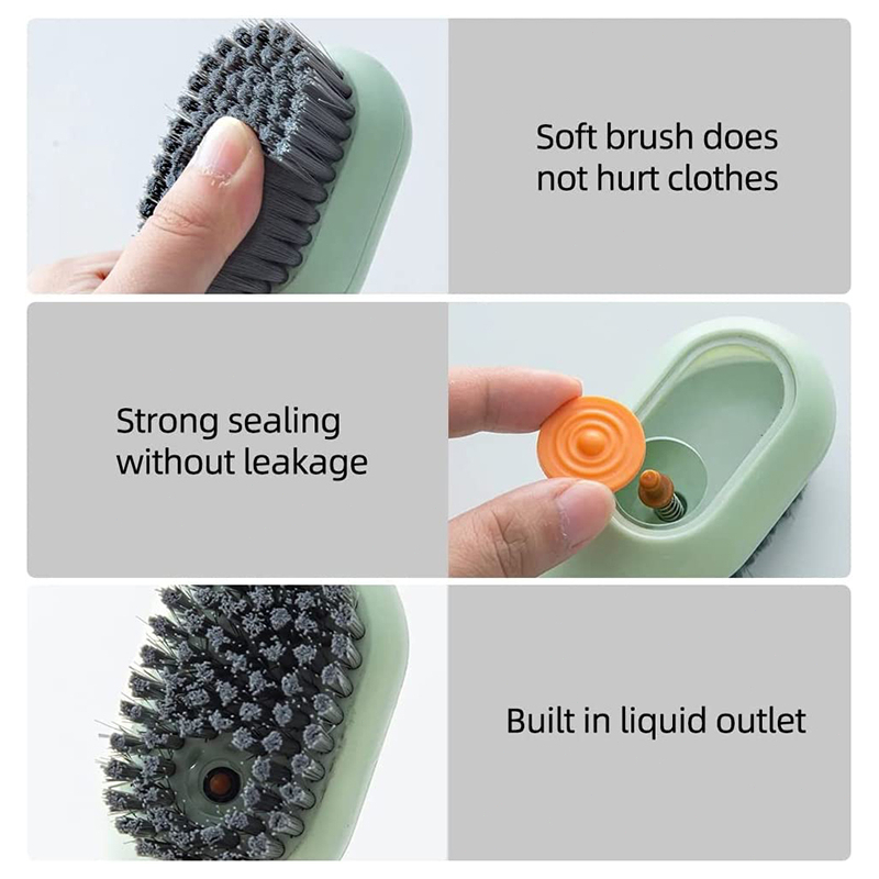 - This laundry brush features pressing design and automatic soap dispensing, which can bring you more convenience when you are doing the laundry. Designed for multipurpose use, this cleaning brush is suitable for washing clothes, brushing shoes, brushing carpets, and can cope with a variety of cleaning needs, making it possible to use.