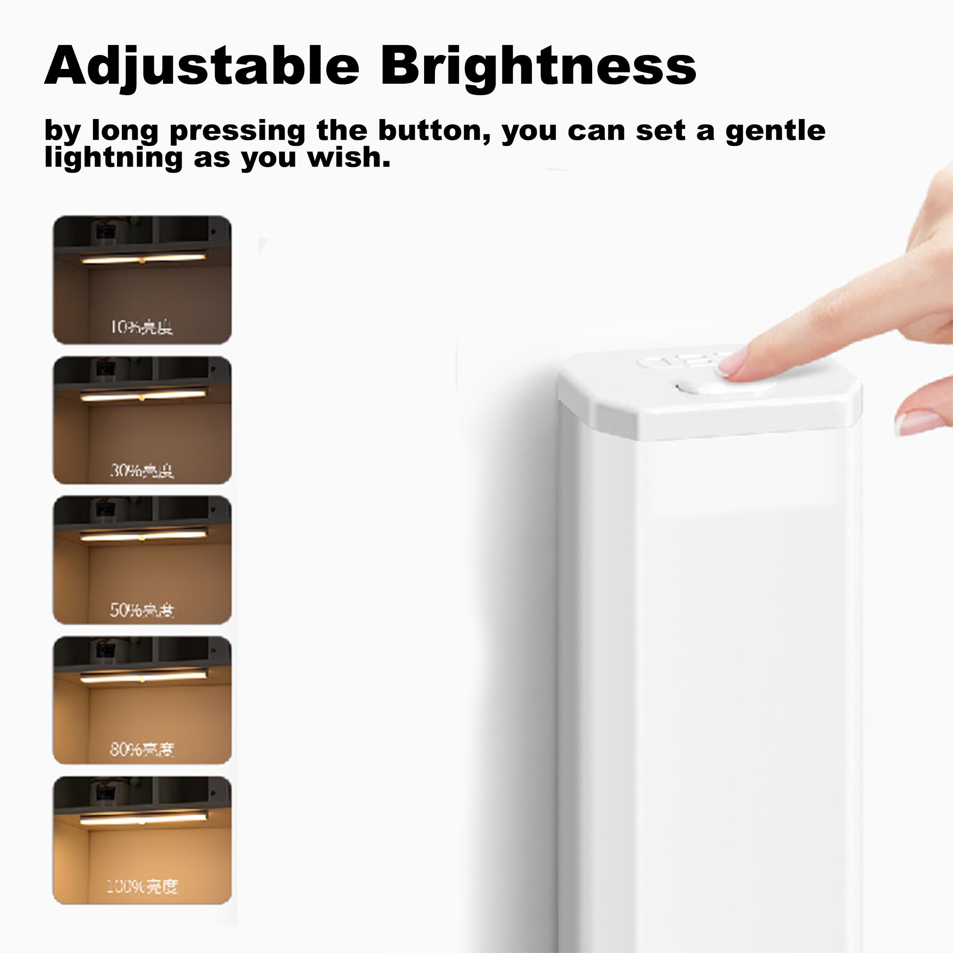 a. Features:- Do not need screws, can be directly pasted, tight suction magnet.- The use of human infrared induction principle, without sound and switch control, powerful guarantee for quiet living spaces within the building- Suitable for Door, attic, dark, basement, garage, cellar, cave, wardrobes, cabinets, cupboards,- Use adhesive pad and magnet, easy to install under your cabinet or closet, with energy efficiency LED inside with long working time and good battery lifetime, up to 12 Hours of run-time on Low Brightness and about 3 Hours on High Brightness, motion detection makes our light very easily active and work.b. Specifications detail is on listing image