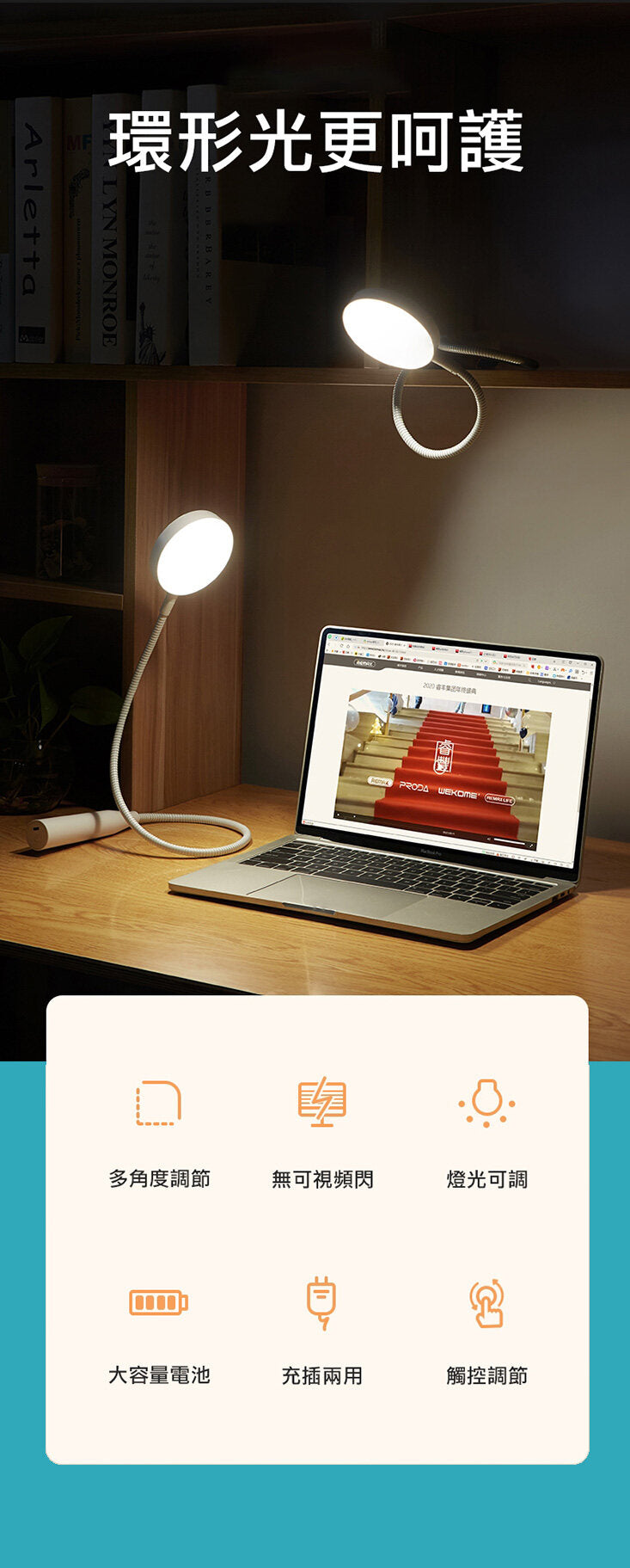 Remax RT-L01 KwangChe Series 1200mAh Rechargeable LED Desk Lamp Stand Hang Office Bedroom Study