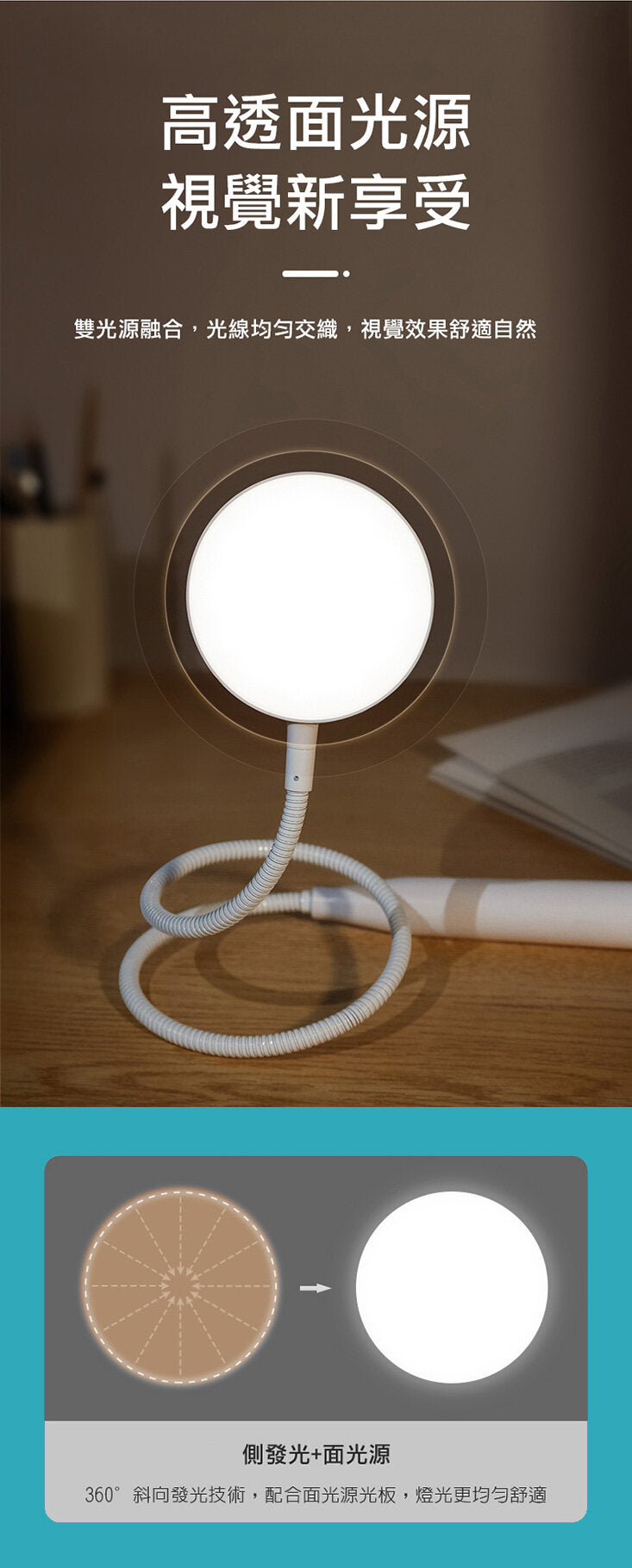 - A soft-lighting lampshade to avoid dazzling light for a more even light area.