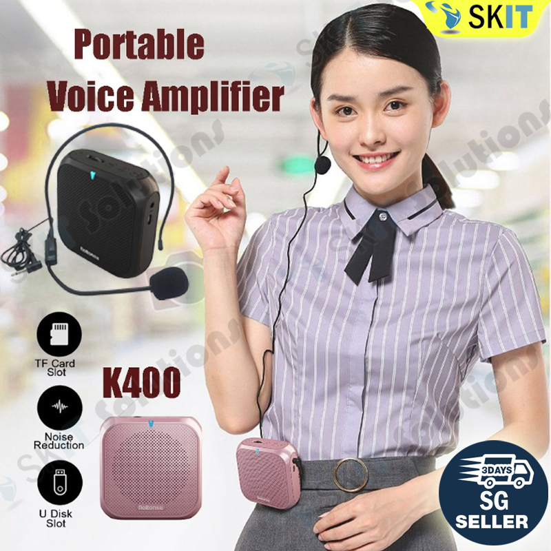 - Package Content: 1x K400 Voice Amplifier, 1x USB Cable, 1*x 1200mAh Rechargeable Battery, 1x Professional Wired Headset Microphone