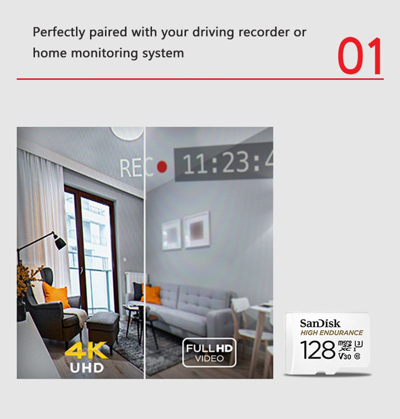 SanDisk High Endurance Memory Card 32GB 64GB 128GB 256GB Dash Cam Car Camera CCTV Video MicroSD 4K