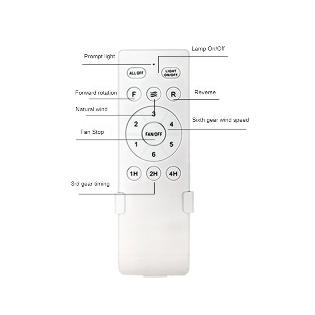 - [Multifunctional Ceiling Fan Remote Control] This fan remote control kit can convert a normal ceiling fan into a remote control. 6-speed (high/medium/low) and off; 3 independent timing remote settings and control buttons: 1H, 2H, 4H; adjustable forward and reverse. 1 button for light on/off control.(no dimming).
