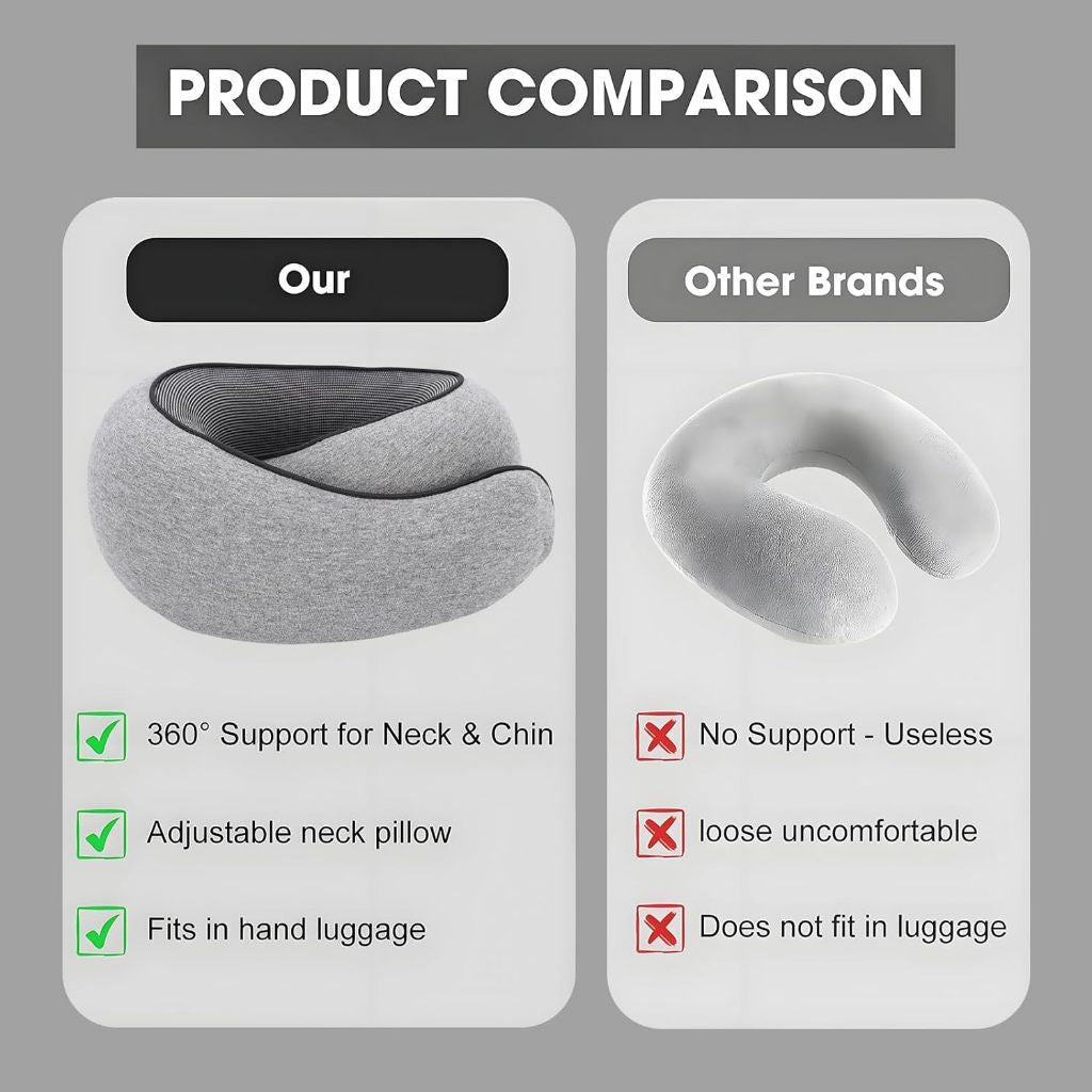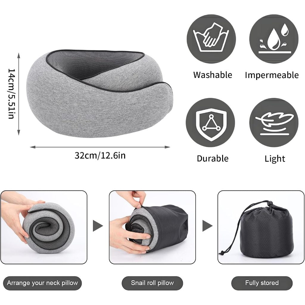 - 【Memory Foam Travel Pillow】This travel pillow features high-resilience memory foam with 5-second return technology, offering comfort and durability. It adjusts easily for a custom fit around your neck.
