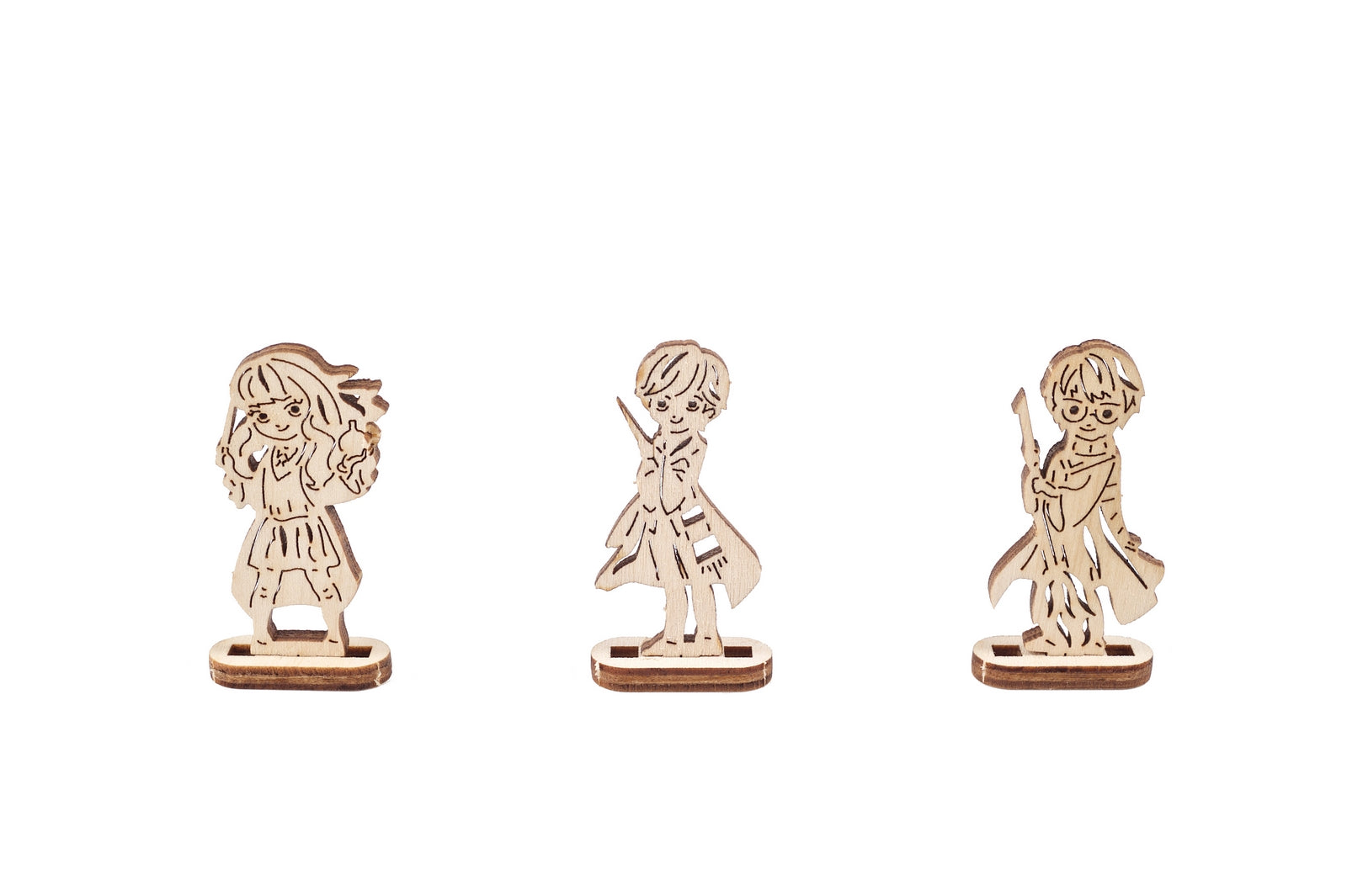 Enter the Wizarding World and join Harry, Hermione and Ron on an exciting journey aboard the HogwartsTM Express with this special working model train by Ugears. Leaving from King's Cross Station in London with destination Hogsmeade Station near Hogwarts Castle, this beautiful wooden model train has a spring-powered locomotive, a coal tender, and a passenger carriage in which three figurines of the young wizarding heroes are seen heading off to school. Wind the model with the special key, twist the smokestack Start/Stop switch, then watch the mesmerizing motion of the locomotive's gears, wheels and connecting rods as it chugs ahead. The Ugears HogwartsTM Express can travel 4 meters (with tender and carriage) or 6 meters (locomotive only) on any smooth, flat surface. This beautiful 3D wooden model train also comes with a section of track and Platform 9 ¾ buffer stop for an elegant static display.