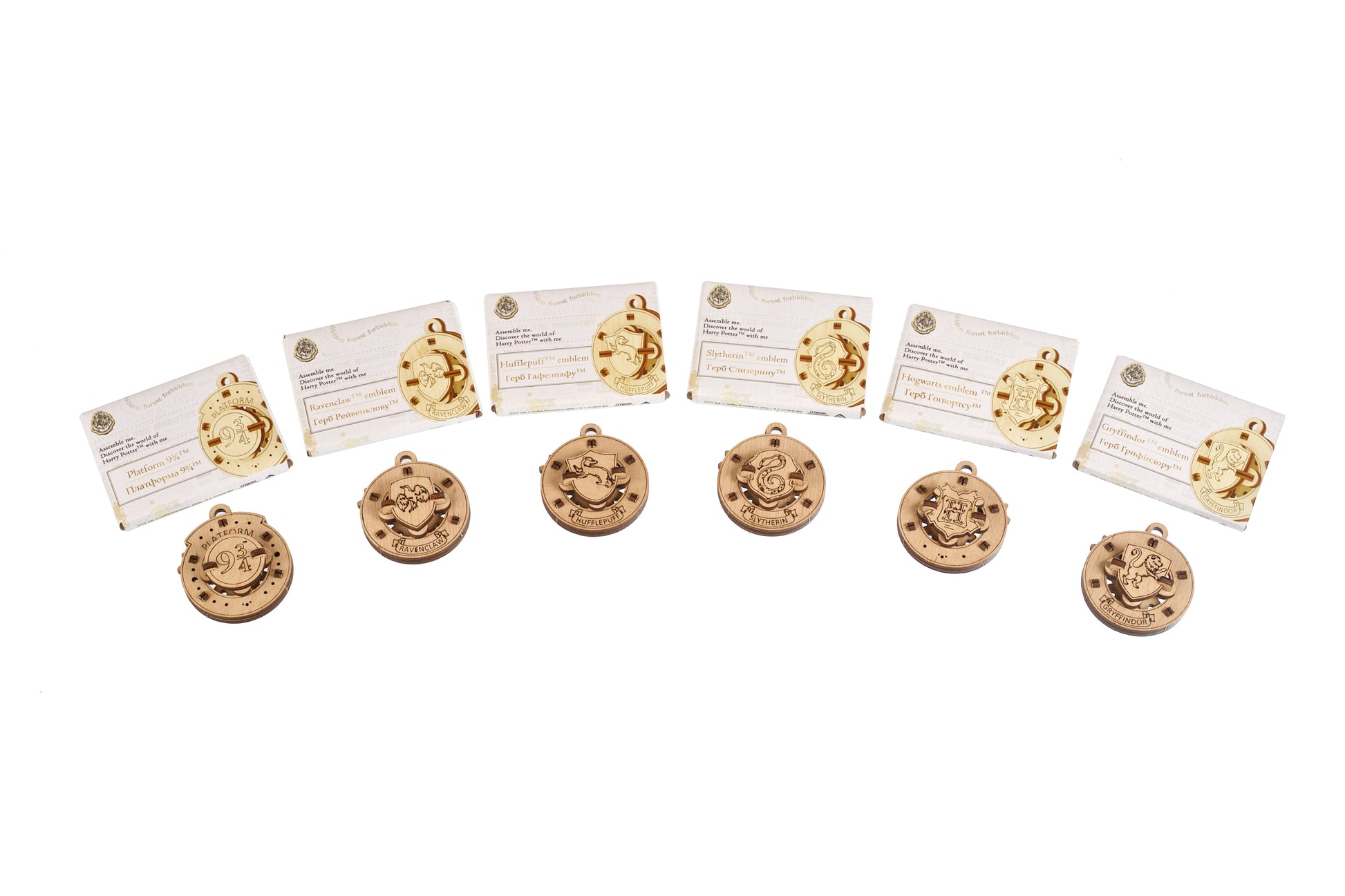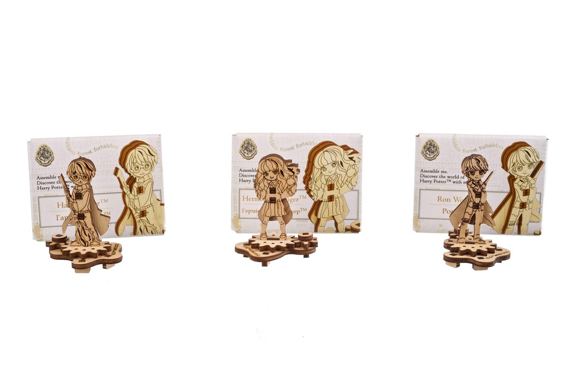 Models in the Ugears Harry Potter™ Advent Calendar collection are made of attractive natural composite wood, and include figurines of Harry Potter™, Hermione Granger™ and Ronald Weasley™ that rotate on spinning gear platforms, as does the Goblet of Fire™. As you open the windows one by one you'll get to build iconic Harry Potter™ items, like spinning badges with the emblems of the Hogwarts™ School of Witchcraft and Wizardry and its four houses—Gryffindor™, Hufflepuff™, Ravenclaw™, and Slytherin™. These badges and many of the other items you will build are U-fidgets: fun little mechanical toys with spinning gears to keep small hands occupied. Assembly is fun and easy and can be accomplished in a few minutes.