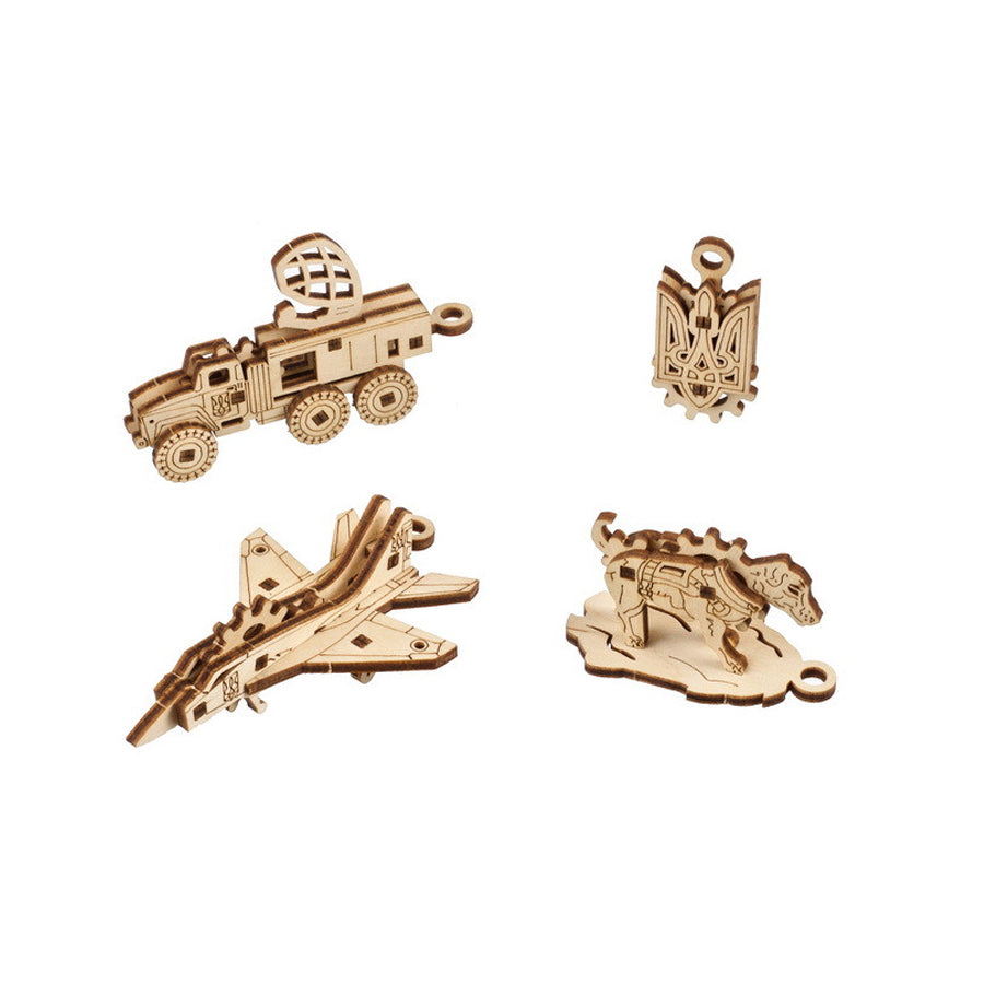 The "Bravery" series of U-Fidgets from Ugears celebrates some of the heroes bravely defending Ukraine against the invader. The set features four small wooden figurines you assemble yourself, each with simple mechanical elements:
