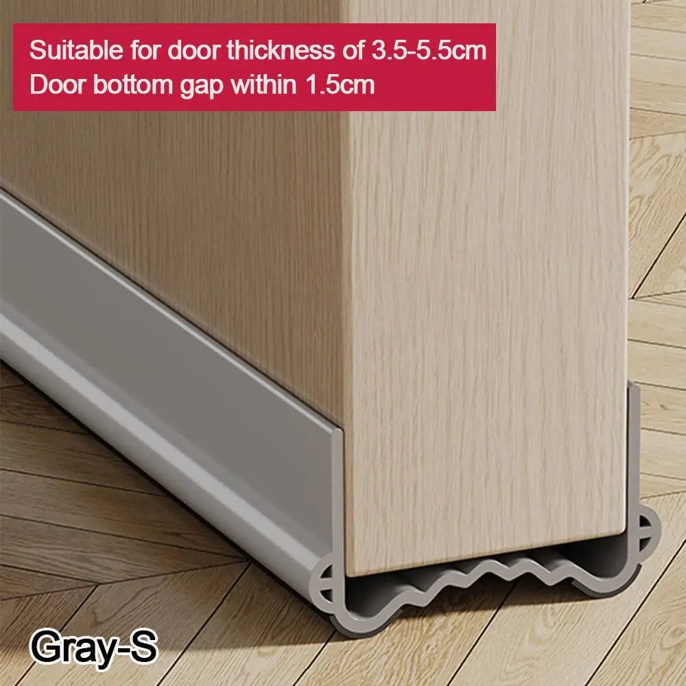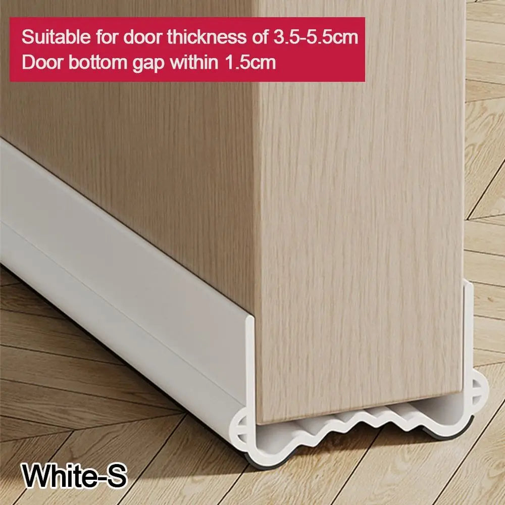 The door draft stopper suitable for door bottom gap within 1.5cm, not suitable for cement or similar rough surfaces.